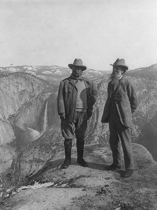 Muir’s writings for magazines and newspapers, proselytising on the wonders of nature, made him famous. But his prose became angry when loggers moved into Yosemite. He led calls for the Federal Government to protect these landscapes, eventually taking Theodore Roosevelt into the wilderness for a three-day trip of camping and lobbying.