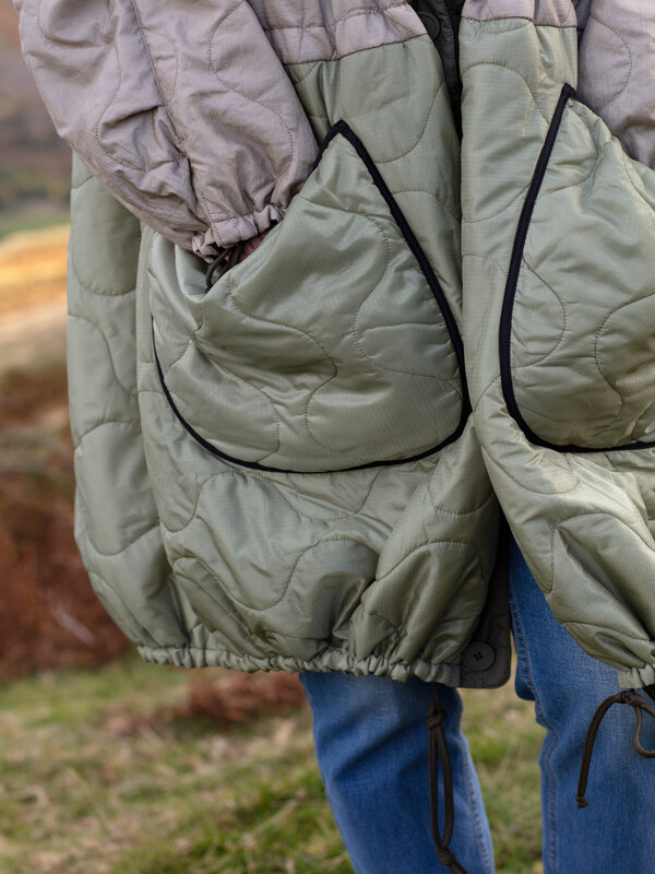 The Parachute Parka is the perfect style to be dressed up or dressed down. If you layer the Parka over jeans or trousers, a chunky sweater and hiking boots it feels very outdoors and casual, but if you reverse to the solid colour side and layer over a dress, skirt and some heels it becomes a much more evening style – rather like an opera coat. It is very versatile and that’s why it’s our best-selling piece!