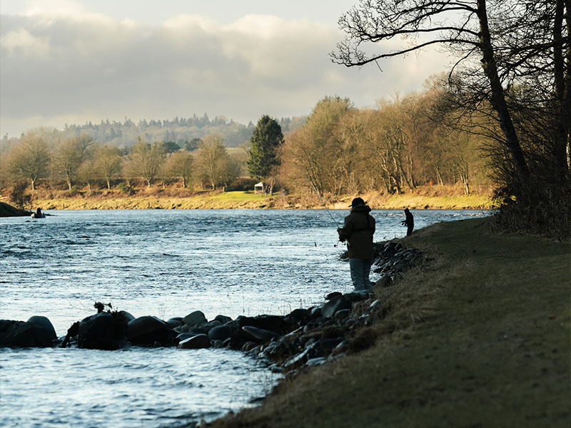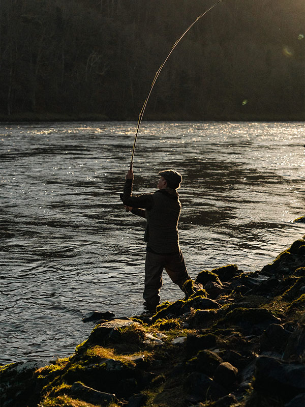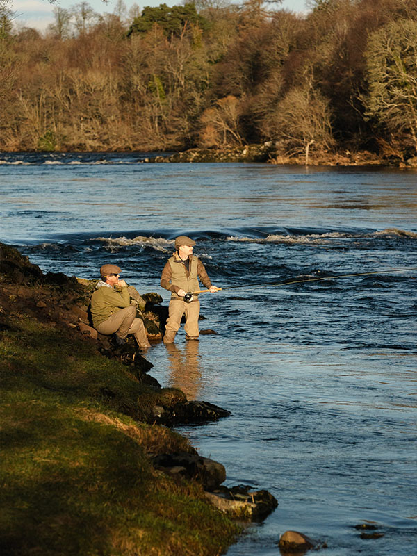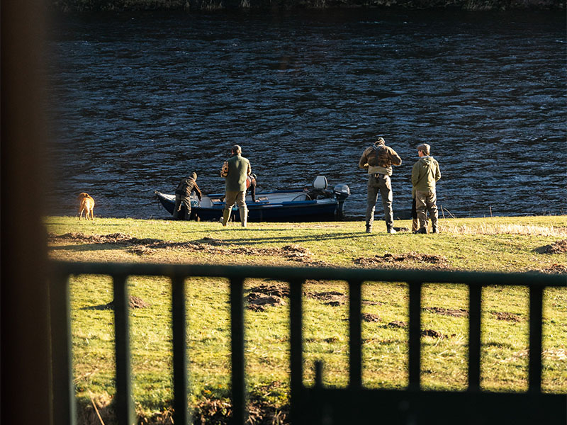 At Gleneagles we celebrate in style, inviting our Fishing & Shooting school members – as well as hotel guests – to our best Beats for a day full of revelry. Before morning breaks, keen fishers gather at the Shooting & Fishing Lodge. Here they’re kitted out while enjoying coffee and bacon rolls before they join our line up of mossy green Defenders crowned by rods. As they arrive at the chosen Beat to make their way down to the banks of the Tay, they’re processed to the water’s edge by a lone piper bedecked in traditional Highland dress.