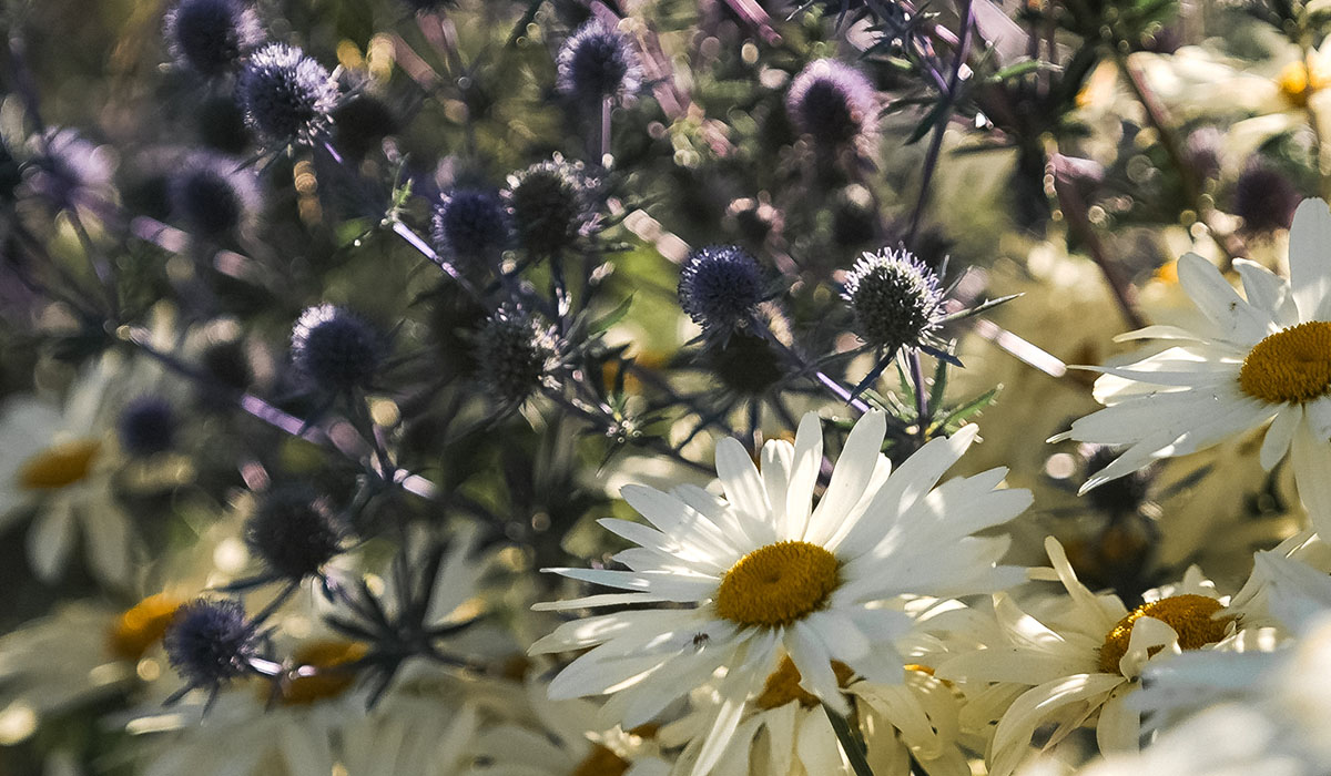 “We’re not a traditional estate in terms of walled gardens,” says William of a planting scheme that instead pairs herbaceous perennials with grasses in beds designed to reflect Gleneagles’ surroundings. “The purples, lilacs and mauves mirror the colours of the heathers in the glens and the Ochil Hills to the south,” says William. “Similar to techniques used in landscape painting, the foreground colours are more vibrant, slowly fading to lighter shades with increased distance.” Standout species include the deep blue Aconitum ‘Bressingham Spire’, bright pink Echinacea purpurea ‘Magnus’ and the ruffled Iris iberica. Grasses such as deschampsia are mixed throughout to give year-round interest, with golden stems and green foliage in spring and summer leaving seed heads that provide architectural interest when the flowers die down.