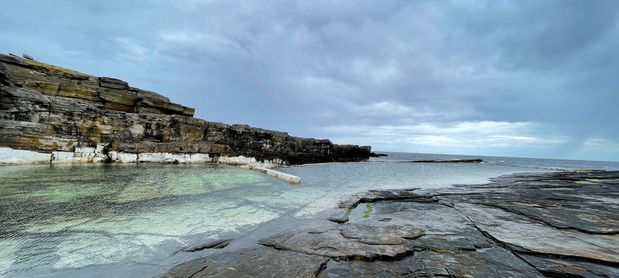 Just like Castle Sands and Step Rock, there are more seawater pools across Scotland’s east coast. All have similar stories to tell. Tidal pools are a unique combination of a natural pool that fills with seawater on an ebbing tide but with a man-made element such as metal steps or a cement boundary. They’re the perfect architectural harnessing of nature. The sea can be full of dangers, like rip tides or strong currents, but a boundaried tidal pool protects you. The Trinkie in Scotland, for example, is located where waves of the North Sea beat ferociously against the cliffs, and much of the coastline there is inaccessible. Yet, nestled amongst the vicious rocks, a perfect lazuline pool of water offers a safe swim. It’s remarkable that throughout history communities have found ways to connect with the landscape around them by creating these saltwater sanctuaries.