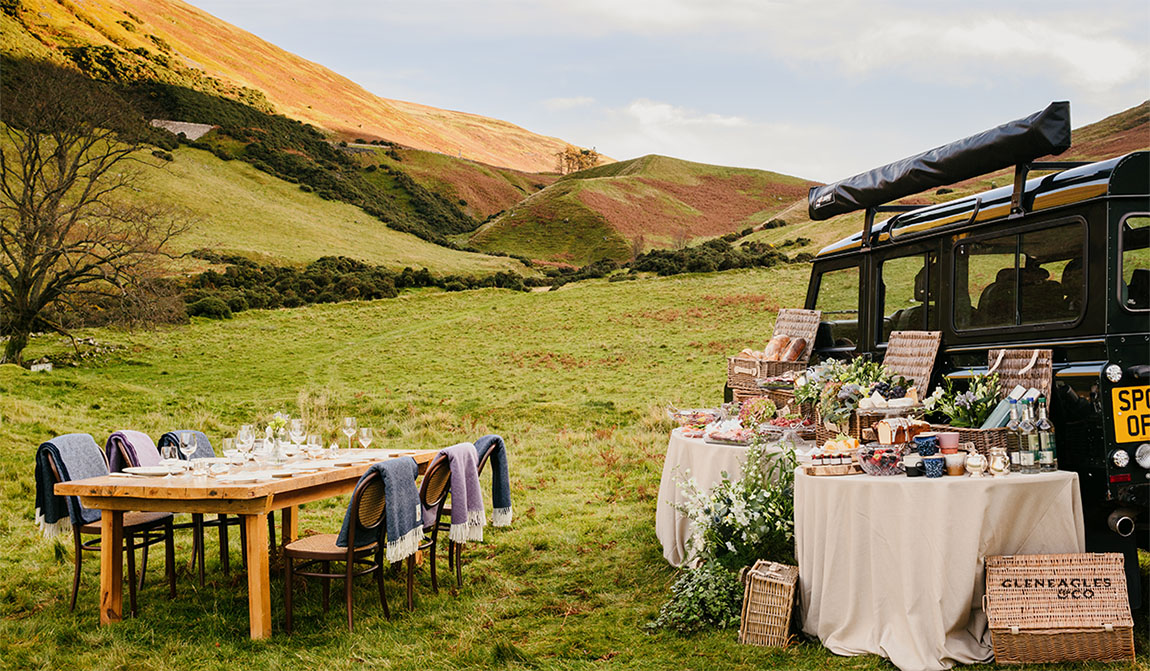 Today, the sight of a Land Rover winding its way up into the hills laden with blankets and baskets is one of the estate’s most stirring images. Our picnics epitomise true Scotland and allow people to see the very best of the region – the rugged landscapes, the heather, the hills, and the feeling of being immersed in unspoiled scenery. It’s something that should be on everyone’s bucket list when they come to Gleneagles – you never quite know what you’re going to see: golden eagles, peregrine falcons, majestic red deer or even a chance sighting of the once red-listed pine marten, which is now making a comeback thanks to conservation programmes.